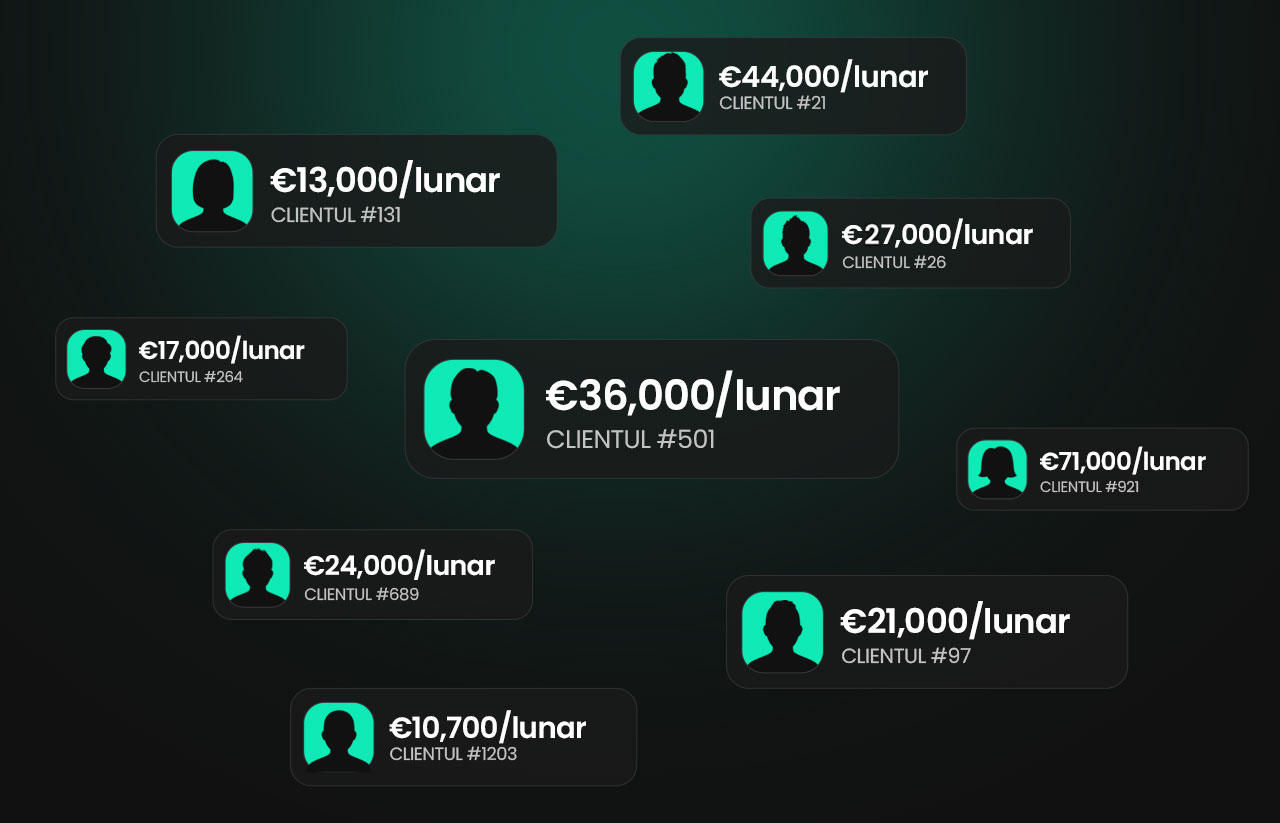 "Am intrat cu zero experiență. Rareș și echipa lui mi-au dat exact structura de care aveam nevoie. După prima săptămână, am generat 3.500€ semnând primul meu client."