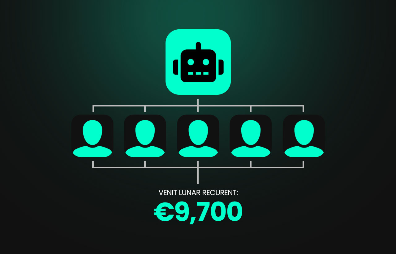 Vlad și-a pierdut banii pe 5 cursuri înainte să ajungă la noi. L-am luat de la zero, i-am oferit întreg planul și după doar 6 luni a atins venitul de €10k lunar cu propria agenția AI.